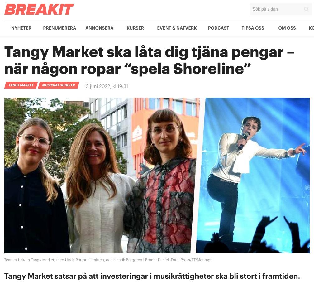 Joint Investment Streaming Platform enables you to make money as soon as someone yells “Play Shoreline” Full article (in Swedish) here >