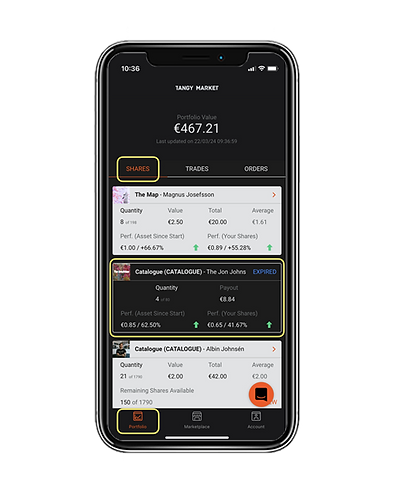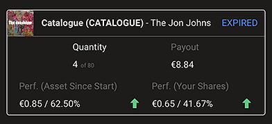 Perf. (Asset Since Start) – How the music asset performed since start, last traded price and the performance in % compared to the initial price.